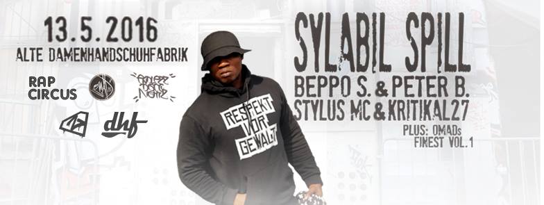 Die alte Damenhandschuhfabrik in Leipzig gibt alles. Nach den Rapkonzerten der letzten Wochen steht am 13.05. ein weiteres Untergrundhighlight in den Startlöchern: Der Bonner Rapper Sylabil Spill kommt zum Spitten in den Leipziger HipHop-Club. Bei seinen ersten Freestylesessions Mitte der 1990er-Jahre hat Spill das Mic dermaßen lieben gelernt, dass ihm bei Fremdberührung durch Toy MCs noch heute regelmäßig die Galle platzt. Auch Xatar nannte in schon als Geheimtipp. Lasst euch überraschen, was geschieht, wenn die Rapmaschine mit kongolesischen Wurzeln die Bühne entern wird. Support gibts von den Leipzigern Beppo S. & Peter B., Stylus MC & Kritikal27, DJ derbystarr und einer Special-Edition der Open Mic Am Dienstag-Cypher.